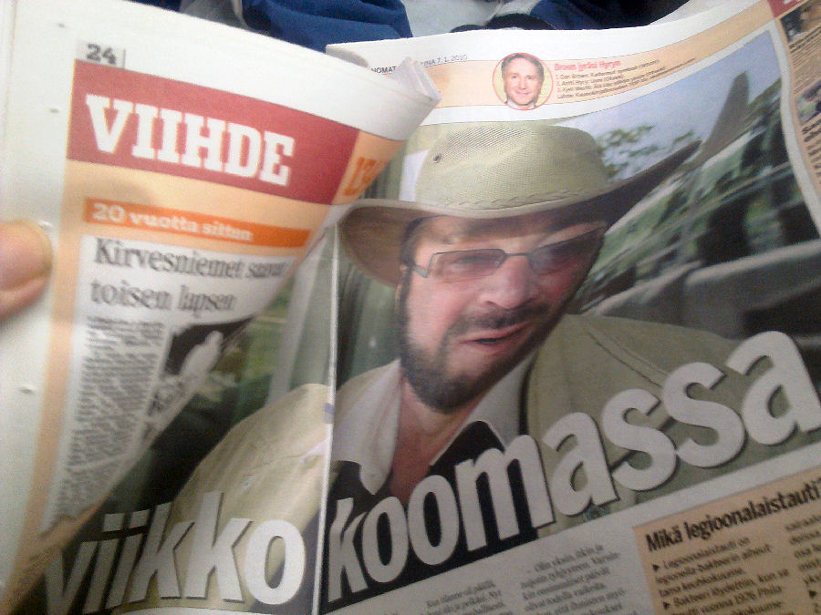 | Surmapäivän kuvia. Uintireissulla Peurungan kylpylässä torstaina, uuden vuosikymmenen aattona klo 14:54-17:00. Vakavat kasvot tiedotustilaisuudesssa molemmin puolin - Munkkikahvit ja -kaakaot - Kiinnostavat lehdet. |