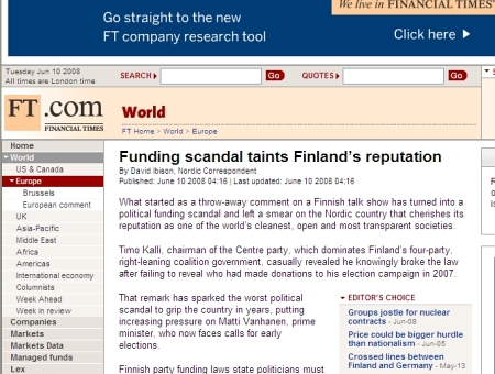 scandal taints Finland's reputation
