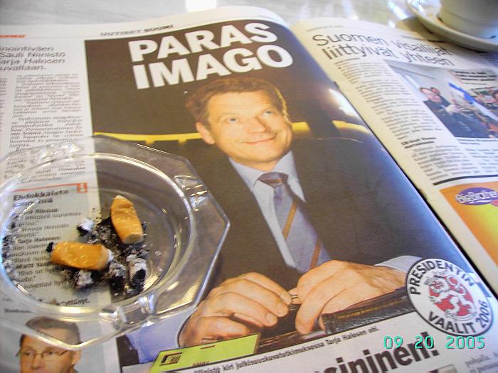 Nettisanomat 2010/05/01 - Kuva. Palmu ja Karhu. Vapunpäivä. 1. toukokuuta. Suomalaisen työn päivä. Komisario Palmu myhäilee Matti Kassilan ohjaaman elokuvan viimeisessä kuvassa myös lasin ääreen eksyneelle. Klo 15:16. Joel Jopi Rinne. Kuva: Pertti Manninen. Ravintola Kallio. Keski-Suomi. Jyväskylän seutu. Laukaa. - Kuvia vapunaattona. Joutsen. 2 joutsenta. "KAMIA PERIKOPN" eli Kreikan kriisi paljastaa emun puutteet. HBL. MALPLACÉ. Huvudpersonen pä Denise Grünsteins bild återvänder till platsen där något skett för länge sedan. "Päähenkilö palaa paikalle jossa jotakin tapahtui kauan sitten". HBL. Työtä! Nuorille oikeus tulevaisuuteen. Tämän vuoksi opiskelin? Työttömyys tappaa! Päivi Salkojärvi. Tuija Öystilä. Satu Kortelainen. Tiedonantaja. Luokkaristiriitojen paluu politiikan keskiöön. Nokia, rahoitatko mun gradun? Kuva opiskelijoiden mielenosoituksesta, jossa vastustettiin uutta yliopistolakia. Tiedonantaja. Kreikan-tauti uhkaa levitä Etelä-Euroopassa. Kauppalehti. Nokialla on kiire USA:ssa. Kauppalehti. Potku- ja vaunuajelu. Kiire lomabussiin. Odotusta. Odotusta 2. Yksinäinen mies (?) puhelimessa. Lähtötervehdys. Odotusta Vapaudenkadulla. Paikallisliikenteen terminaali. Kaupunginteatteri. Asuintalo. Puisto. Kirkko. Parkkikenttä, josta funkkishuoltoasema purettiin 10 vuotta sitten ja jolle oli aluksi tarkoitus rakentaa konserttitalo mutta nyt sitten joku liikerakennus kunhan ajat paranevat. Anarkisti tutkii aikataulua viedäkseen pääkallolippunsa jonnekin. Chopivasti chiliä. Taffel. Chiliwheels. Pysäkki KESKUSTA 6. Love is in the air. Magnum. Solero. Sauvansa laattojen rakoon kaatanut kulkija jatkaa matkaansa, kun ennen nostoyrityksen onnistumista ystävällinen nuori mies nosti sauvan maasta ja toivotti hyvää vappua. Radan ylittävä tuubi yhdistää Lutakon ja keskustan kaupunkiin niin, että parissa kymmenessä minuutissa kävelee ja paljon nopeammin pyöräilee. Poliisi tutkii reitin esteettömyyden partioautollaan. Kahden kerroksen väkeä. Yksinäinen mies syö eväitään sillan alla polkupyörän nojatessa betonipylvääseen. Vanhempi herrasmies ylioppilaslakissaan pyöräilee keskustaan Kuokkalan sillalla Jyväskylässä.- Lainaus, kommentti ja linkit. Uusi Suomi: Niinistön elämäkerta luvatta. Kustantaja sekoilee. Niklas Herlin. - Kuva. Caj Bremer - humanisti ja tarinankertoja & Rasmus - utelias kissa. - - Kuva. Vaikka hetken odottikin, niin lippu ei liehunut kummemmin. - Lippulinkkejä. Arkistokuvia. - Kuva. Vihtavuori-panoraama. Pojat ovat poikia ... - Pojat ovat poikia, tytöt katselevat ja odottavat Funk-pysäkillä kyytiä kotiin koulun päätytyttyä. Keski-Suomi. Laukaa. Vihtavuori. Haavistontie. Torstai 2010-04-08 klo 15:25, Yhdistetty 3 peräkkäisestä kuvasta, Pertti Manninen. - Kasvosto: Konnakabinetti: Ministerit, jotka unohtivat kertoa Nova Group-vaalirahoituksesta (joka sisältyi Kehittyvien maakuntien Suomi ry:ltä saatuun rahoitukseen, josta siitäkin lähes kaikki kertoivat vasta vuotta myöhemmin ns. täydentäessään alkuperäistä ilmoitustaan) ts. rikkoivat vaalilakia antaessaan vaalirahoitusilmoituksensa.  - Nettisanomat lauantai 01.05.2010 - etusivu - kuva - kuvat - pertti manninen - Luettelo - nettisanomat - 12.fi - Lakisanomat - N:o 1147.