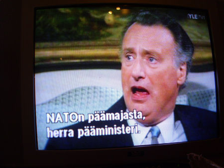Kuva: "NATOn päämajasta, herra pääministeri". Kuva: Yle. Tiistai 2008-05-27 klo 19:41. Lue myös! "Pääministeri Matti Vanhanen leikkii vakavilla asioilla." Turvallisuutta etsimässä. Pääkirjoitus. 2004/10/07 http://www.nettisanomat.com/2004/10/07/ paakirjoitusturvallisuutta.htm |