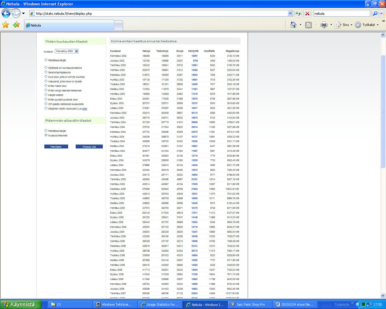 sivustot. Kävijätilastot. Marraskuu 2002 - Lokakuu 2010