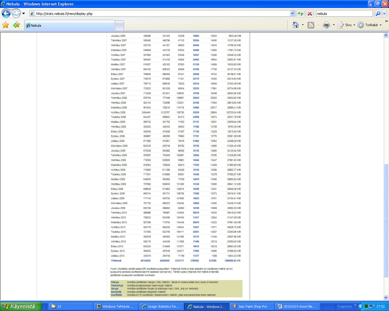 | Nettisanomat. Kävijätilastot. Marraskuu 2002 - Lokakuu 2010 (01-19 päivät). | ||