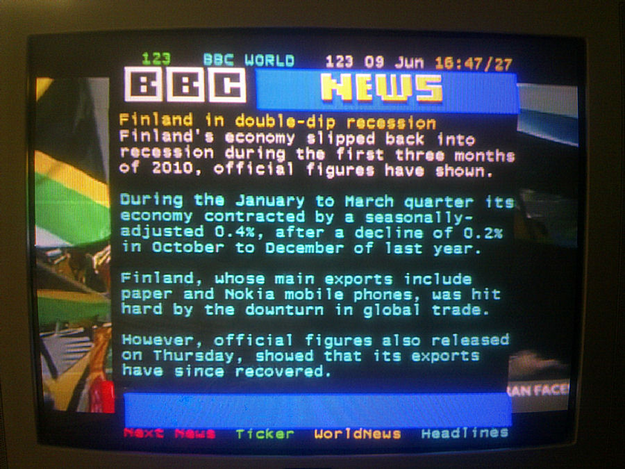 ![]() BBC NEWS 09 Jun Finland in double-dip recession. |
