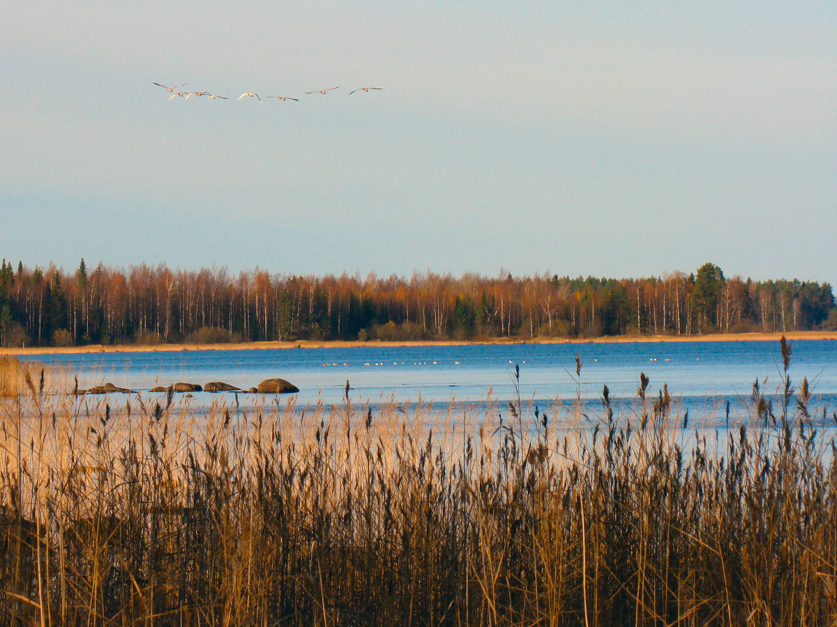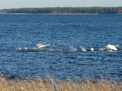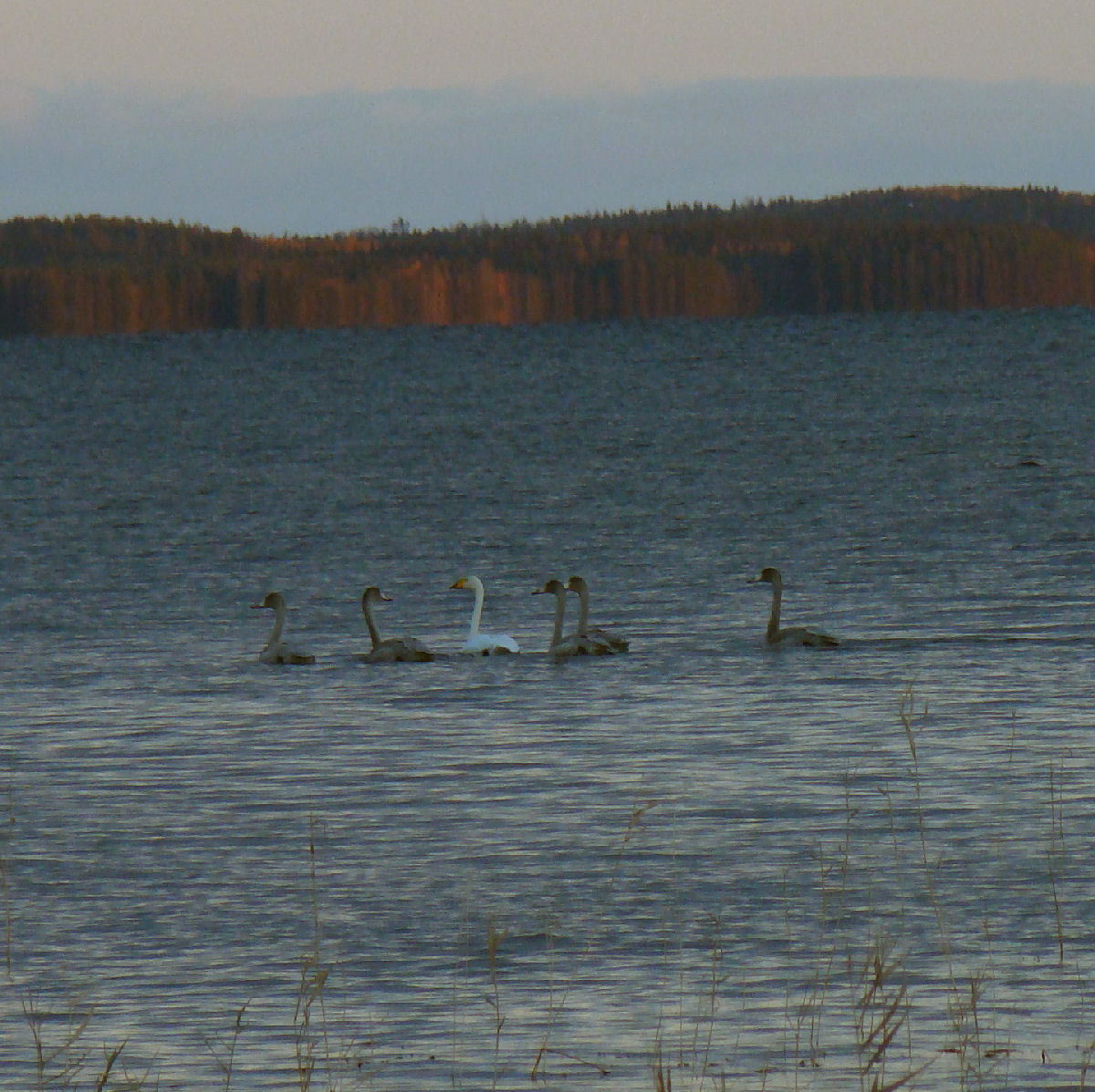 | "5 joutsenlasta lipuu hämärtyvässä illassa vanhempansa kanssa." Kuva: Pohjois-Savo. Keitele. Nilakka lauantaina 2010-10-16 klo 17:46. Pertti Manninen. |