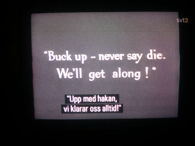 ![]() "Vad tjänar det till att försöka?" - "Upp med hakan, vi klarar oss alltid!" "Back up - never say die. We'll get along !" The End PASSED BY THE NATIONAL BOARD OF REVIEW |