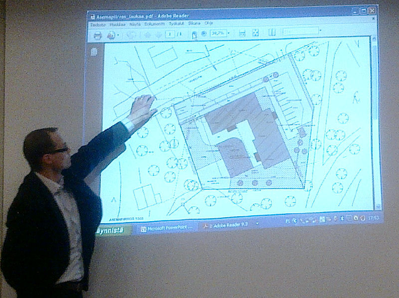 ![]() Kelvoton kaavoitus kostautuu. Yksityinen päiväkoti Aurinkoinen Oy haluaa rakentaa Laukaan keskustaan päiväkodin. Paikaksi on valikoitunut Urheilukentän takana oleva maa-alue, jonne ajoyhteys tulisi Urheilutieltä, asuntokadulta. Asukkaat ovat keränneet 79 nimen adressin ja vastustaneet hanketta juuri siksi, että päiväkodin liikenne on täysin sopimaton asuntoalueen läpi. Päiväkoti toimisi myös öisin ja viikonloppuisin. Asukkaat tekivät oikaisuvaatimuksen kunnanhallituksen päätöksestä, jossa tontin hinta vahvistettiin. Kunnanhallitus hylkäsi oikaisuvaatimuksen perusteettomana joulukuun loppupuolella 2010. Aurinkoinen Oy järjesti keskiviikkona 26.01.2011 tiedotus- ja kuulemistilaisuuden, jossa olivat mukana Aurinkoisen omistajapari ja rakennushankkeen toteuttaja LapTi Oy kahden edustajan voimin. Paikalla oli myös Laukaan sosiaalijohtaja ja päiväkotitoiminnasta vastaava osastonjohtaja. Asukkaita oli heidän lisäkseen viitisentoista, jopa yllättävän paljon. Asia siis kiinnosti. Aurinkoinen esitteli