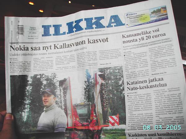 Tiistaina 2. elokuuta 2005. Nettisanomat torstaina 04.08.2005. http://www.nettisanomat.com/2005/08/04/kuvapohjalainennokia.htm http://www.nettisanomat.com/2005/08/04/kuvakarjalainennokia.htm http://www.nettisanomat.com/2005/08/04/kuvailkkanokia.htm Kansaneläke voi nousta yli 20 euroa. Syntyi rokkaamaan. Eemeli metkuilee. Katainen jatkaa Nato-keskustelua. |