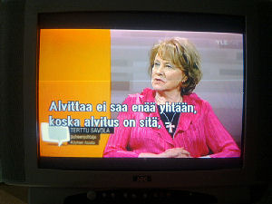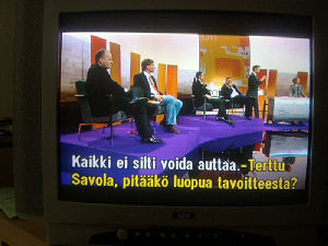 | Terttu Savolan mielipiteitä Ylen vaalitentissä torstaina 2011-03-24, reilusti ennen vaalipäivää. Tekstit seuraavan päivän tekstitetystä lähetyksestä. Ensimmäisen yhteisen kysymyksen esittää toimittaja Kirsi Skön. Vaalilaki |