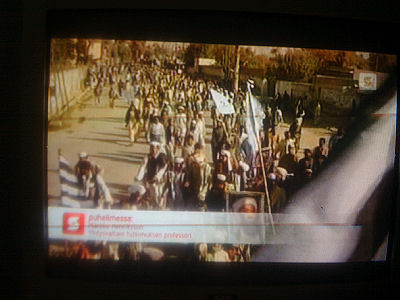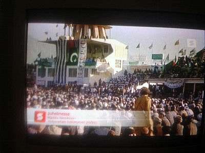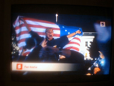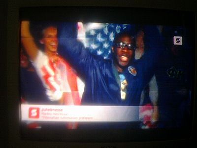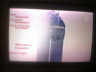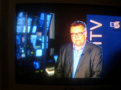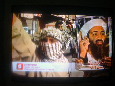 "viimeiset uutiset". Maanantaina 2011-05-02 klo 20.00. Torstaina Kahdeksan uutisten aikaan oli muuta ohjelmaa, eikä uutislähetyksen poisjäämisestä ilmoitettu mitenkään. Maanantaina uutiset siis vielä tulivat ja niistä kävi hyvin ilmi Osama bin Ladenin surmaamisen reaktiot eri puolilla maailmaa: Washingtonissa riemu ja muslimimaailmassa viha. Toimittajat olivat Heikki Lukinmaa ja Pasi Kostiainen (kuvassa nimi vaiillinainen) ja puhelimessa asiasta kertoi Yhdysvaltain tutkimuksen professori Markku Henriksson. Lopputekstit: "ohjaaja Johannes Niva uutispäällikkö Pasi Kostiainen vastaava päätoimittaja Tomi Lindblom. Lähetä uutiskuvia www.suomitv.fi Suomitv 2011". Mobikuvat Pertti Manninen maanantaina 2011-05-02 klo 19:59- 20:02. |