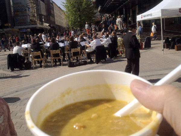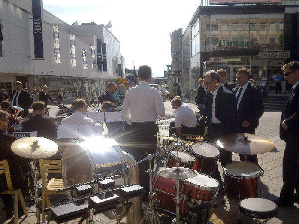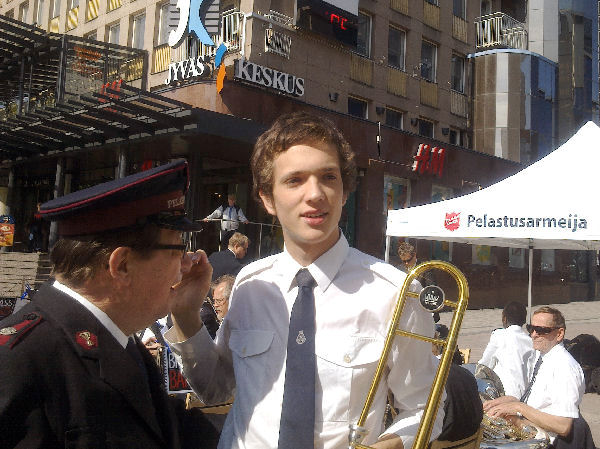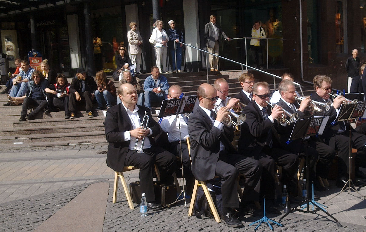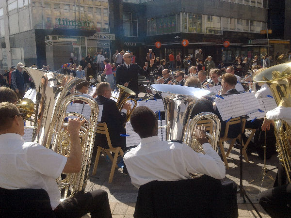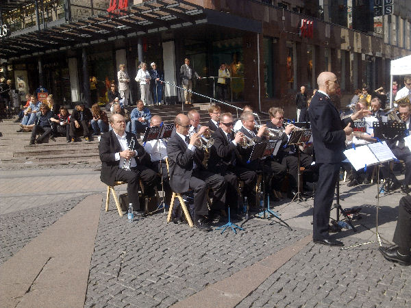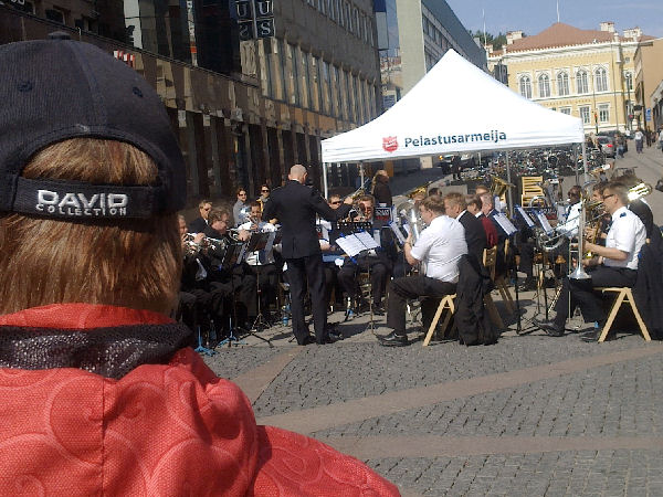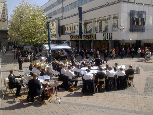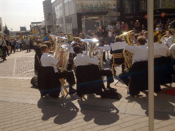 | "Brass Band". Pelastusarmeijan vahvistettu soittokunta Jyväskylässä lauantaina 2011-05-21 klo 11:n jälkeen aurinkoisessa keväässä. |