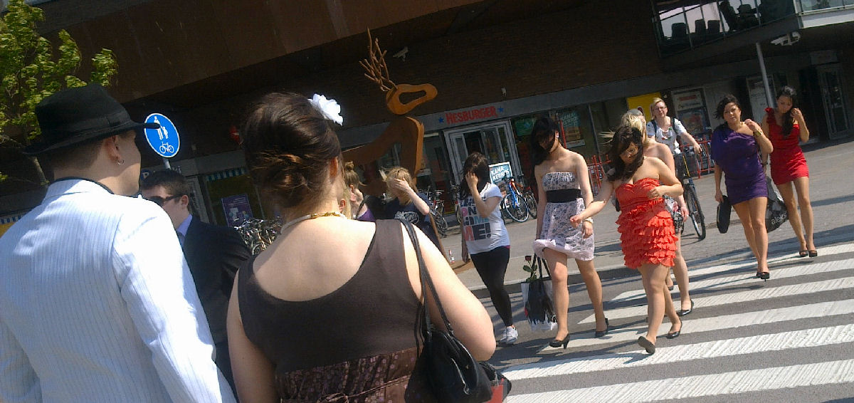 Kuvat: Pertti Manninen. Keski-Suomi. Jyväskylä. Kauppakatu. Kompassi. Ylhäällä mäellä Lyseo. Lauantai 2011-04-21 klo 10:46 - 12:17. Yläkaupungin yön aloitusta. |