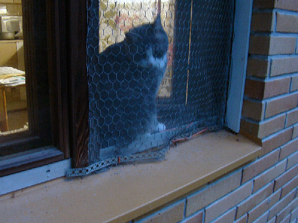 2011-08-14 Kuvassa Rasmus-kissa on päässyt aamuikkunalleen kun isäntä poikkeuksellisen aikaisin lähtee tutkaileman, ovatko sunnuntaiaamun lehdet jo tulleet postilaatikkoon. Melkein päälle