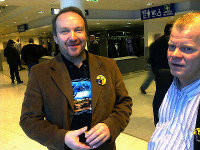 Lukijan kuva: "Katso tuolla on Hakkarainen!"Kansanedustaja Teuvo Hakkarainen Jyväskylän yössä Kauppakadulla aikaisin sunnuntaina 2011-11-27 noin 03:n aikaan sankan fanijoukon piirittämänä. Lähetetyssä kuvassa keskustelijoiden kasvoja on hiukan pehmennetty. Kuva: H.N. - Katso myös! Samassa puserossa. |